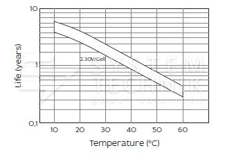 - Срок хранения без подзаряда: 6 мес. при 25°C;