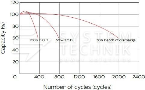 - Срок хранения без подзаряда: 6 мес. при 25°C;