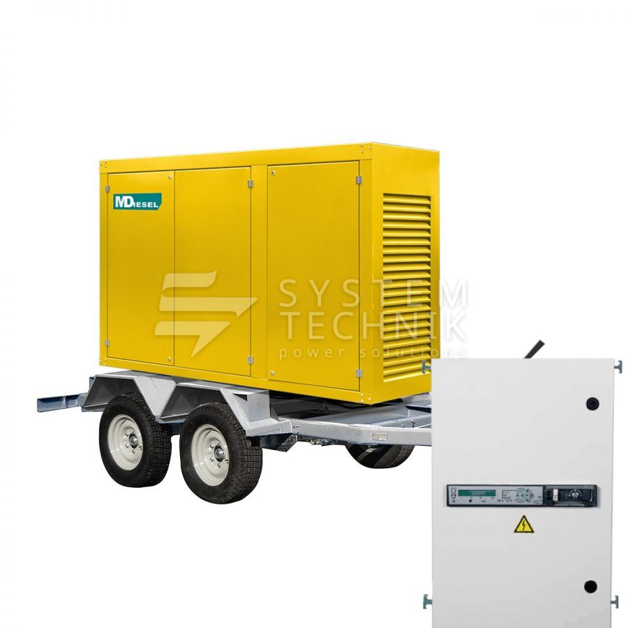 - MitsuDiesel МД ЭД-30-Т400-2РПМ29 в погодозащитном кожухе на шасси с АВР на прицепе
