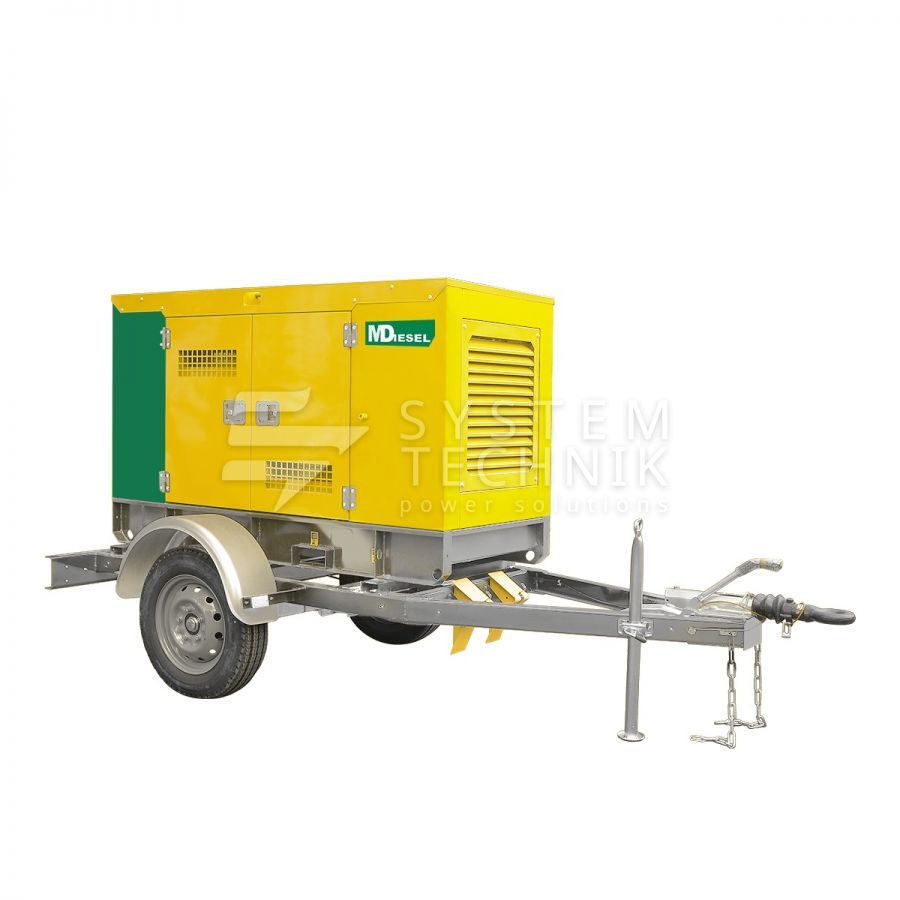 Дизельный генератор MitsuDiesel МД ЭД-50-Т400-1РКМ29 в шумозащитном кожухе на шасси на прицепе в Раменском