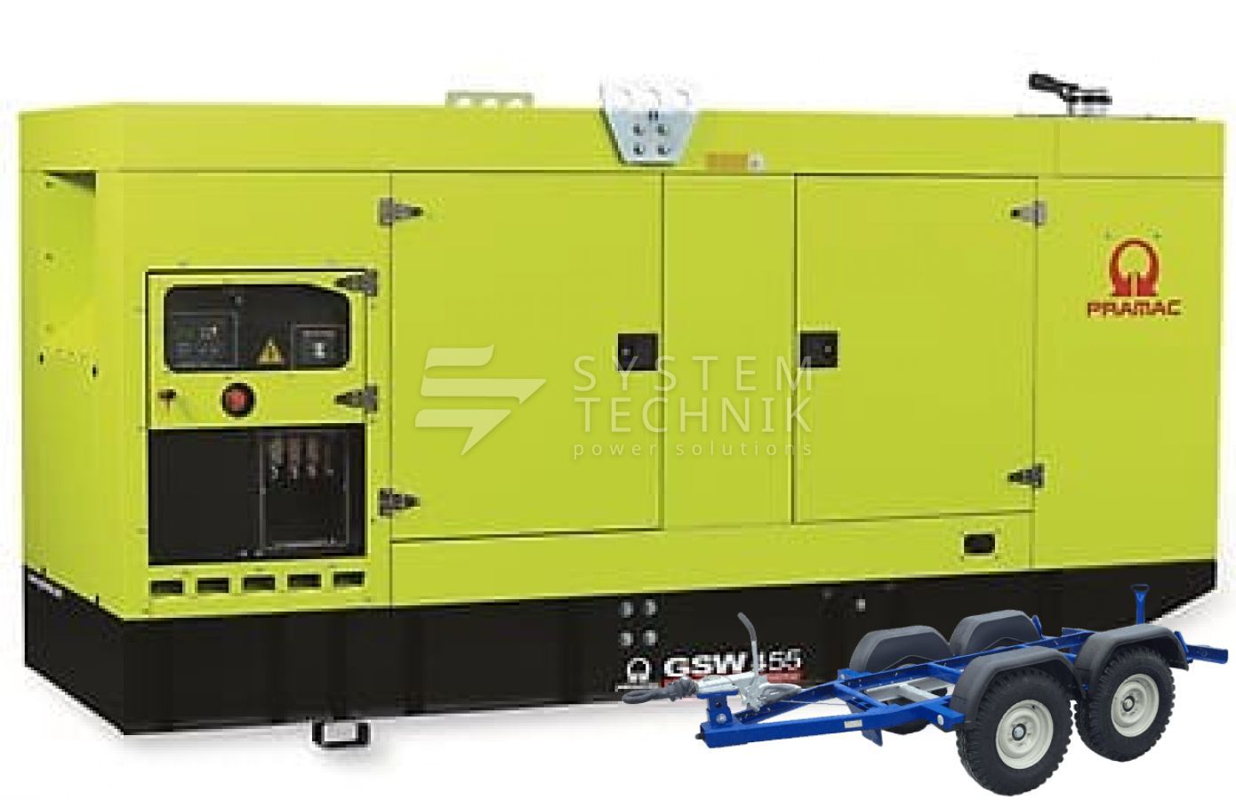 - Дизельный генератор Pramac GSW 455 V 230V 3Ф В кожухе на прицепе