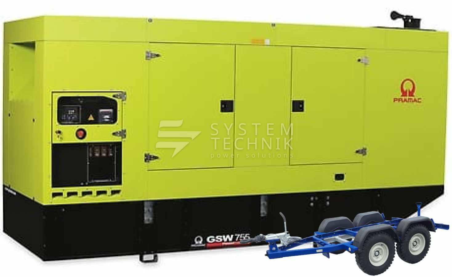 - Дизельный генератор Pramac GSW 755 DO 380V В кожухе на прицепе