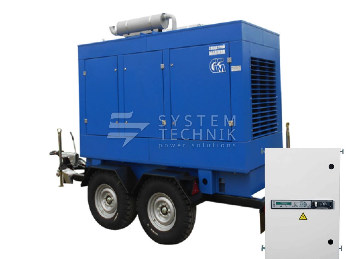 - ССМ ЭД-250-Т400-2РКМ2 в шумозащитном кожухе на шасси с АВР на прицепе