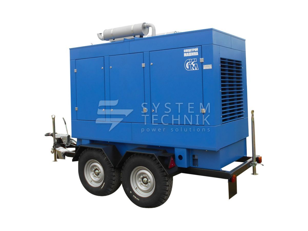 - ССМ ЭД-315-Т400-1РПМ2 в погодозащитном кожухе на шасси на прицепе